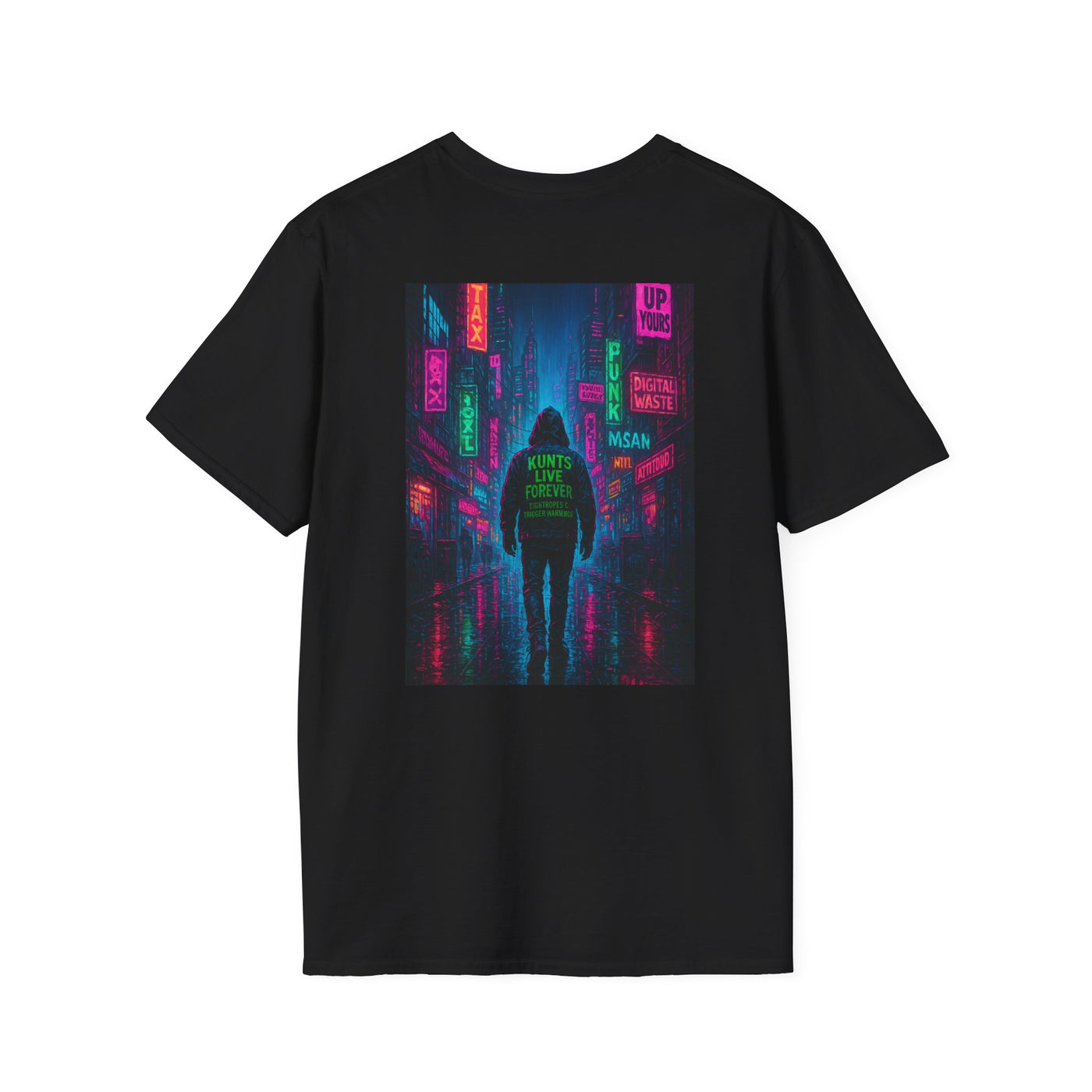 The Neon Rebellion: City of Offense Tee feels like stepping into a cyberpunk alley at 3AM — graffiti humming with electricity, neon signs flickering warnings, the whole world glitching between rebellion and ruin. It’s the uniform for punks who thrive where the streetlights fade and the noise gets real.